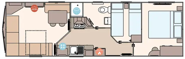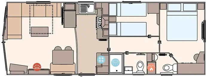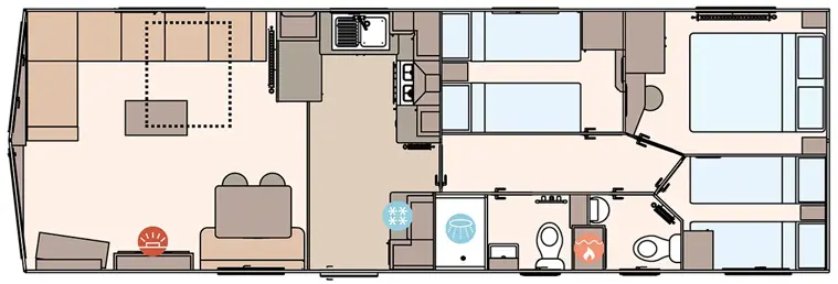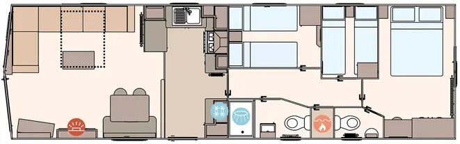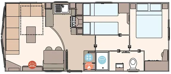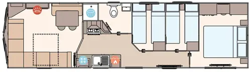 The Keswick offers a robust and comfortable living space with Champagne aluminium cladding and full carpet underlay. It includes a well-equipped kitchen with soft-close cabinetry, a powered cooker, and USB charging points. The master bedroom features a king-size bed (some layouts), Crib 5 mattresses across all rooms, and select models include a second toilet and enhanced ventilation with bathroom extractor fans.