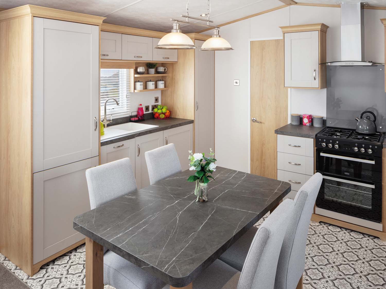 The Highgrove opens up and greets you with a well appointed kitchen diner that leads effortlessly into the lounge. The light, bright and airy Highgrove offers a large comfortable deep-button sofa and coordinating armchair.