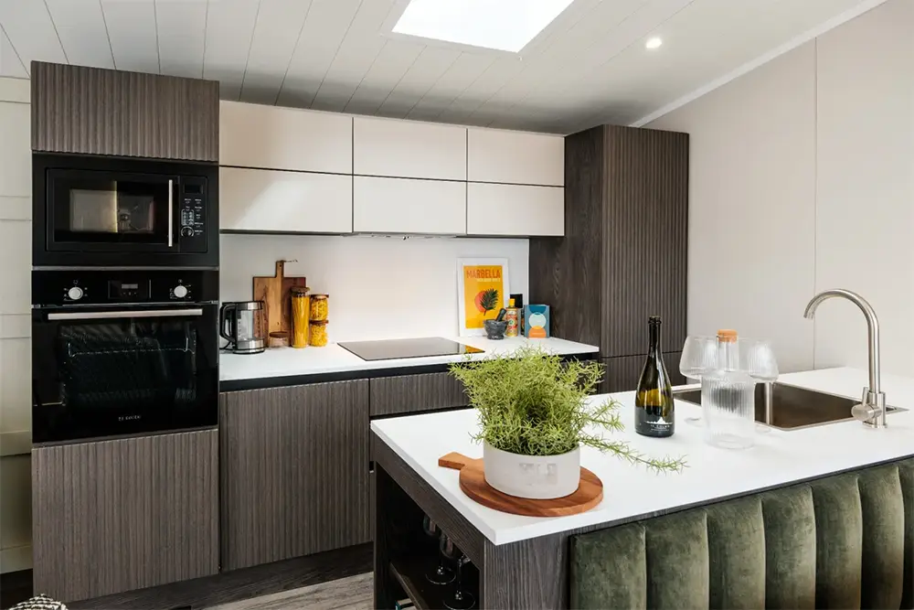 As soon as you step into the lounge you'll be taken aback by the amount of space you have to relax. From the huge L-shaped sofa, to the feature shaker wall panelling, from the large windows, to the stylish design accents - the Kahlo leaves no compromises, offering a truly unforgettable holiday experience for you, the family and your friends.